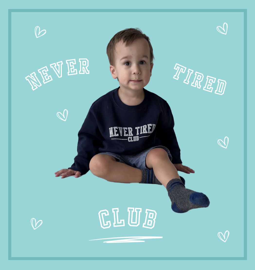 Our Never Tired Club and Always Tired Club sweaters bring humor and cozy style together in the perfect parent-baby duo. Soft, comfy, and totally relatable—because some things never change!
