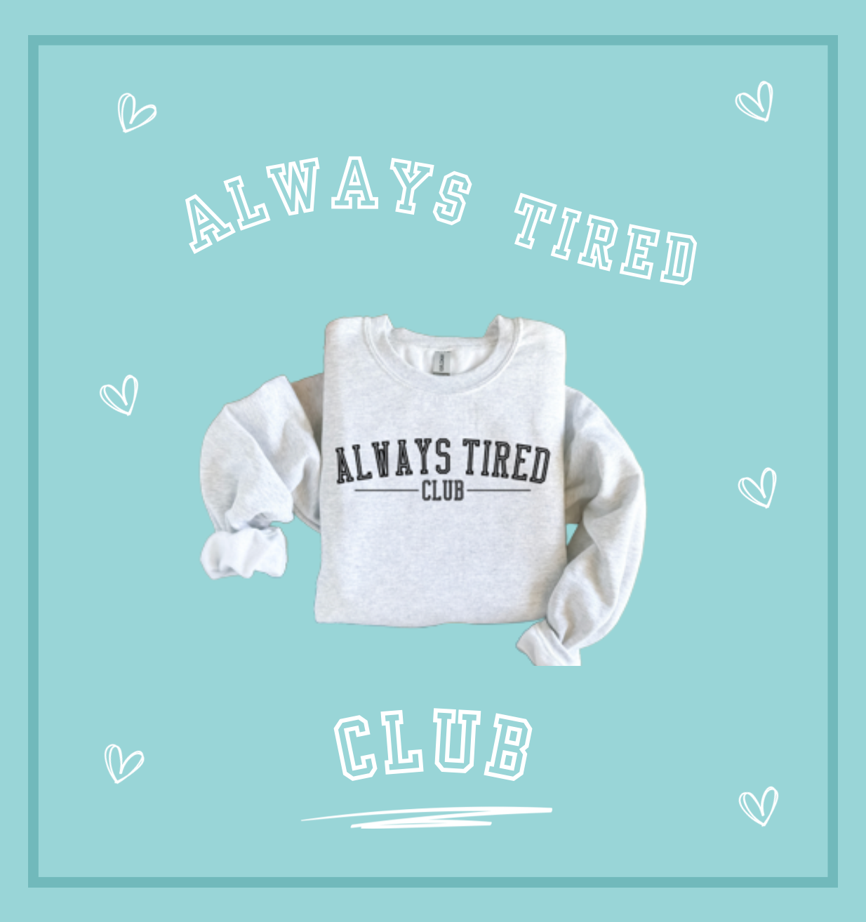 Our Never Tired Club and Always Tired Club sweaters bring humor and cozy style together in the perfect parent-baby duo. Soft, comfy, and totally relatable—because some things never change!